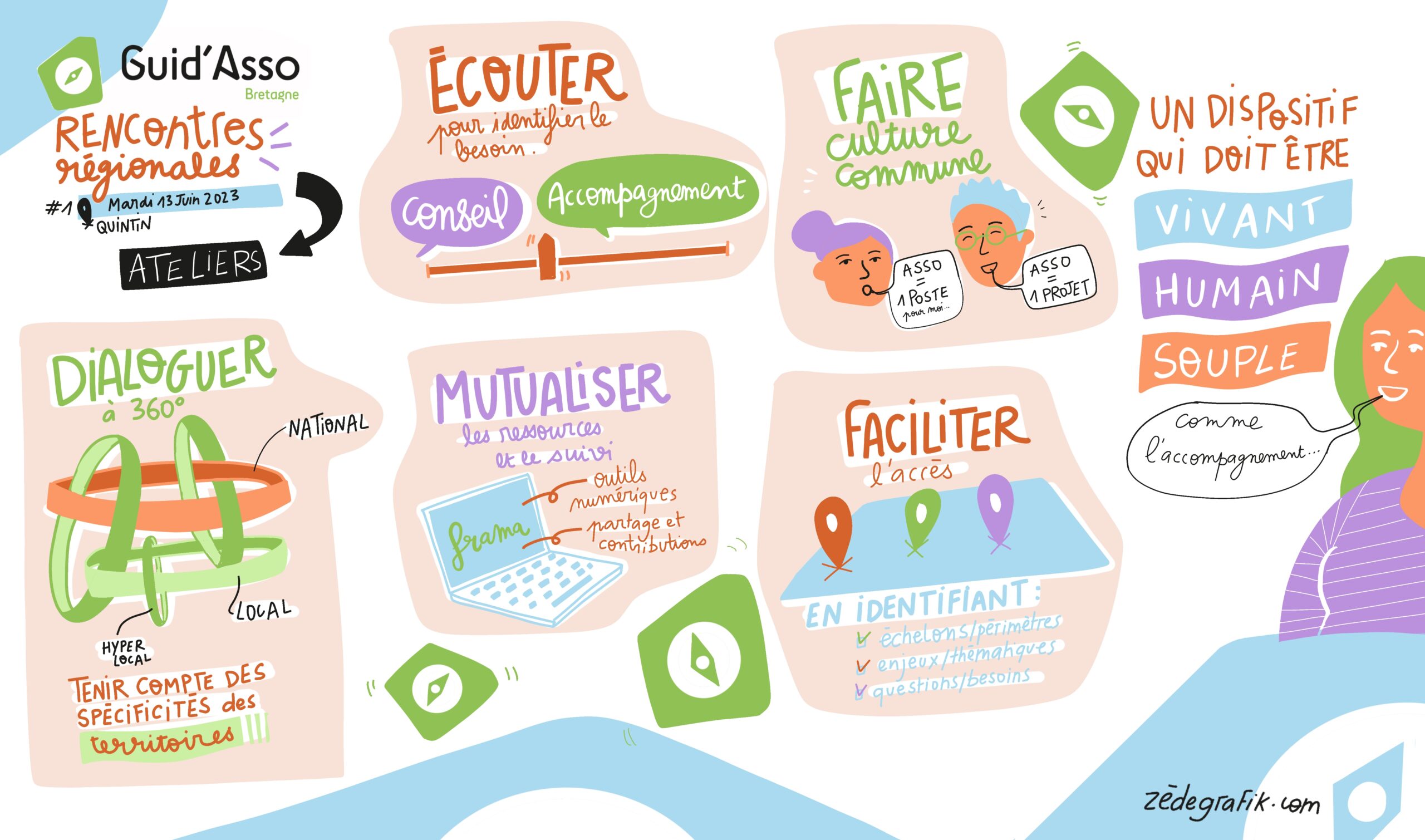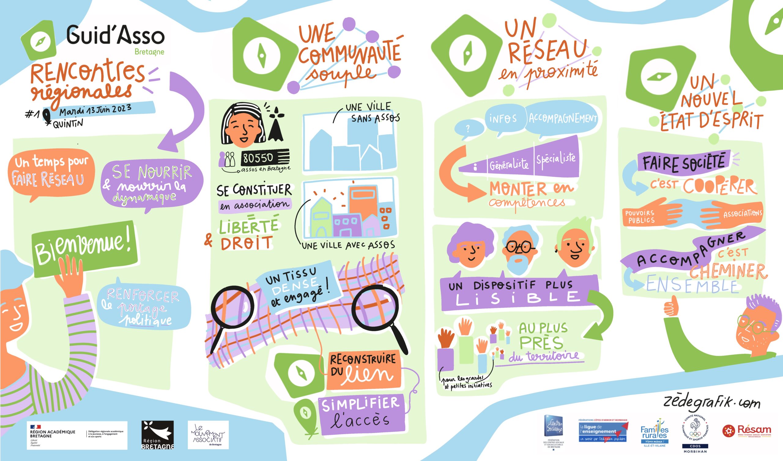 Le 13 Juin 2023 se sont déroulées à la MJC de Quintin, les premières rencontres régionales du Réseau Guid’Asso. Elles ont réuni, plus de 100 personnes, des quatre départements bretons, acteurs de l’accompagnement à la vie associative, animateurs des réseaux, pilotes, partenaires locaux et institutions impliquées.